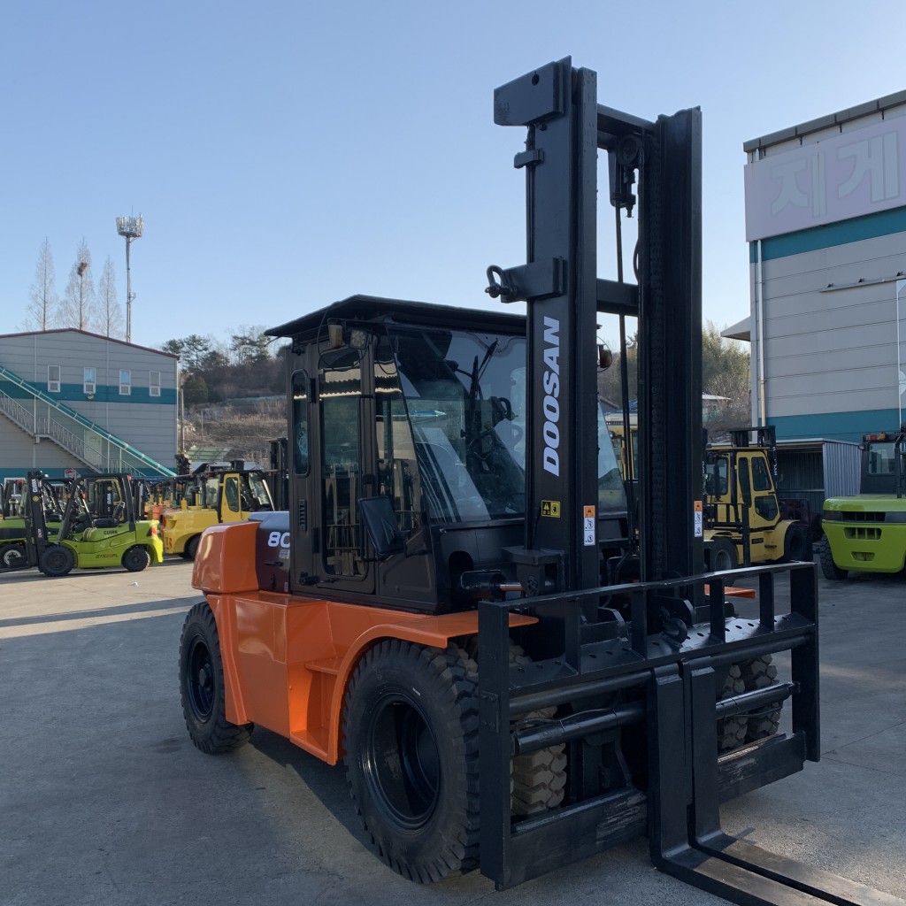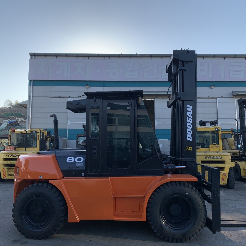 두산지게차 8톤 + 풀옵션 모델입니다. 하이마스트라 사용성 좋습니다! 상태또한 최고